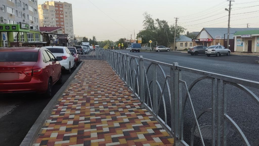 На улице Ломоносова отремонтированы 736 метров дорожного полотна и тротуары, на которых появились пандусы, реконструированы парковки.