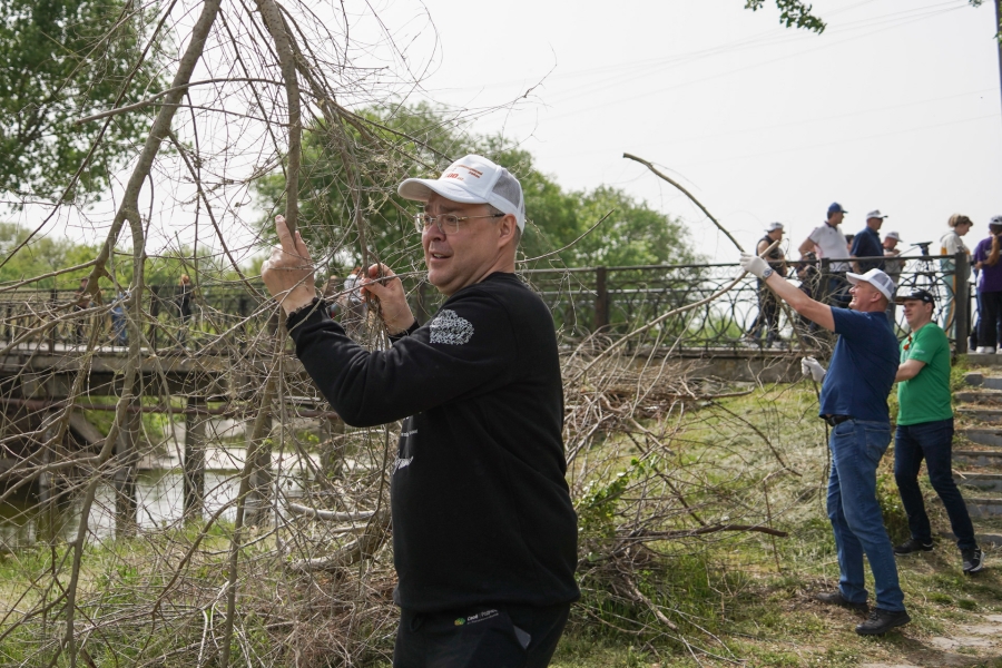 Губернатор Владимир Владимиров принял участие в уборке берега у реки Расшеватка в г. Новоалександровске.