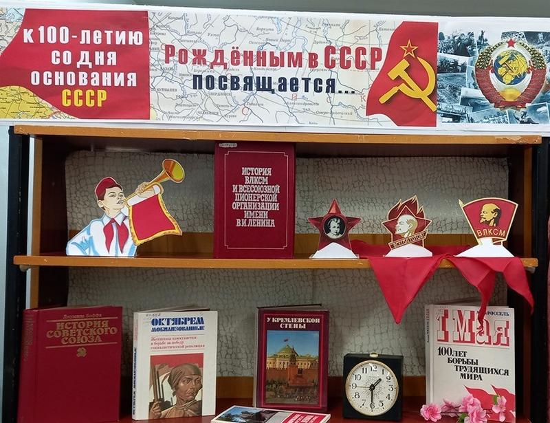30 декабря 1922 года – дата образования Союза Советских Социалистических Республик, – государства, не имеющего аналогов в мировой истории. Сегодня на планете живут миллионы людей, родившихся в СССР, и многие из них с тёплым чувством вспоминают годы своей юности и годы великих побед. К 100-летию со дня основания СССР мы подготовили книжно-иллюстративную выставку, отражающую советскую эпоху. Представленные на выставке книги освещают историю, быт и культуру Советского Союза, рассказывают о сплоченности народов в годы Великой Отечественной войны, о красоте природы и возможностях человека, об эпохальных достижениях СССР – от освоения мирного атома до покорения космоса, о советских праздниках и буднях. Выставка рассчитана на широкий круг пользователей.