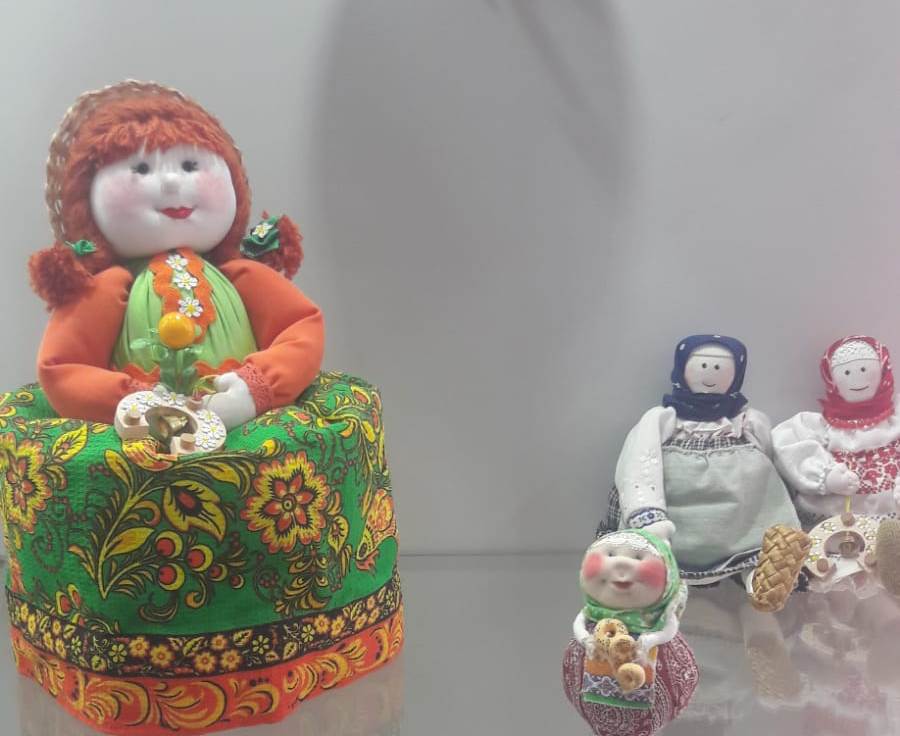 Работы выполнены в технике холодный фарфор, тестопластика, джутовая филигрань, художественная вышивка, текстильный коллаж.