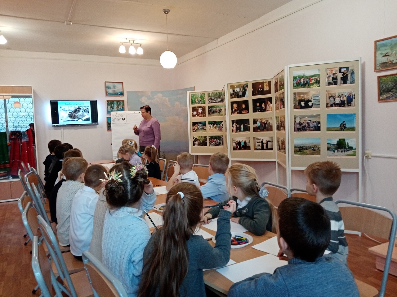 В декабре 2022 года для учащихся первых классов общеобразовательной школы №11 села Татарка прошёл мастер-класс по рисованию в технике графики на базе выставки живописных работ «Природа – творчества исток» Ольги Николаевн