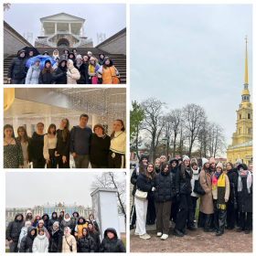 В маршрут вошли основные «визитные карточки» Петербурга – Исаакиевский собор, Медный всадник, Адмиралтейство, Эрмитаж, храм Спаса на Крови, Марсово поле, Петропавловская крепость, Петропавловский собор, стрелка Васильевского острова, Мариинский театр, Казанский собор, Невский проспект Екатерининский дворец в Царском Селе, где совершили пешую прогулку по территории музея-заповедника, наслаждаясь его величественными особняками и роскошными парками. Студенты посетили оперу «Руслан и Людмила» в одном из крупнейших театральных комплексов в России и мира Мариинском театре.