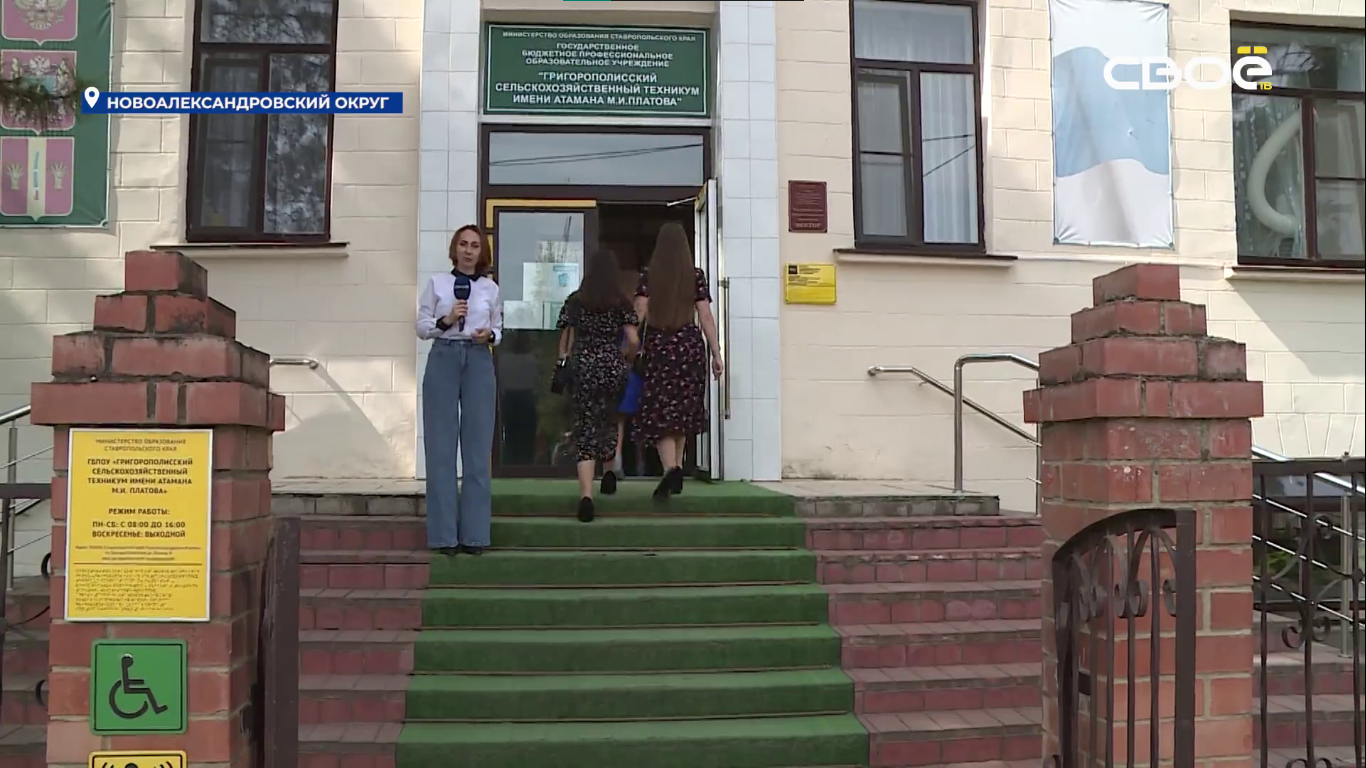 В Григорополисском сельхозтехникуме Новоалександровского округа отметили День знаний. Торжественное мероприятие прошло в станичном Доме культуры. Григорополисский техникум – профессиональная образовательная организация с семидесятилетней историей. В нем обучаются около тысячи студентов. В текущем году поступили 246 первокурсников, рассказали корреспонденту телеканала «СвоёТВ» в образовательном учреждении.