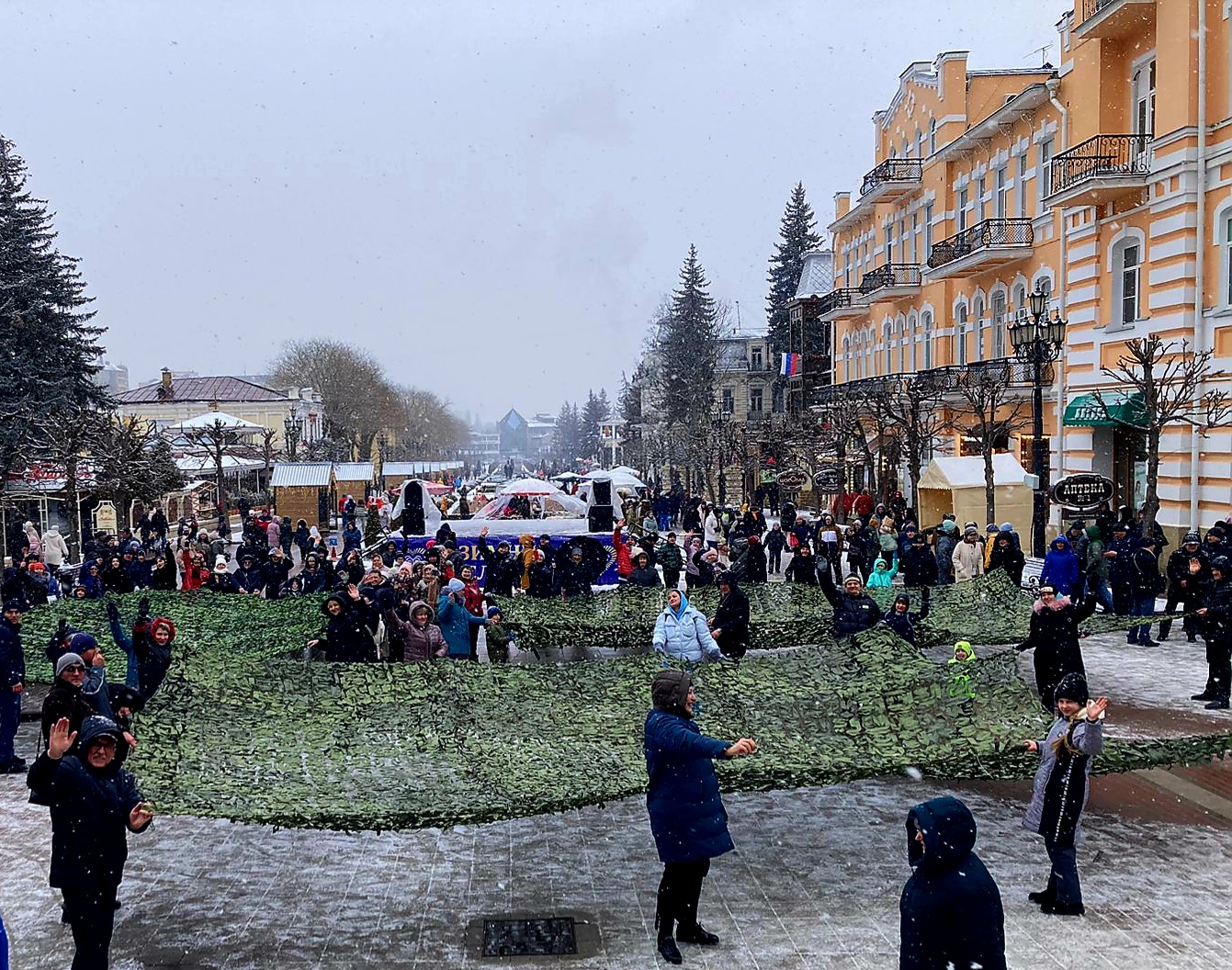 В акции приняло участие более 10 тыс. человек. Туристов сплели в Кисловодске маскировочную сетку длинной 600-метров для воинов-защитников, участников специальной военной операции.