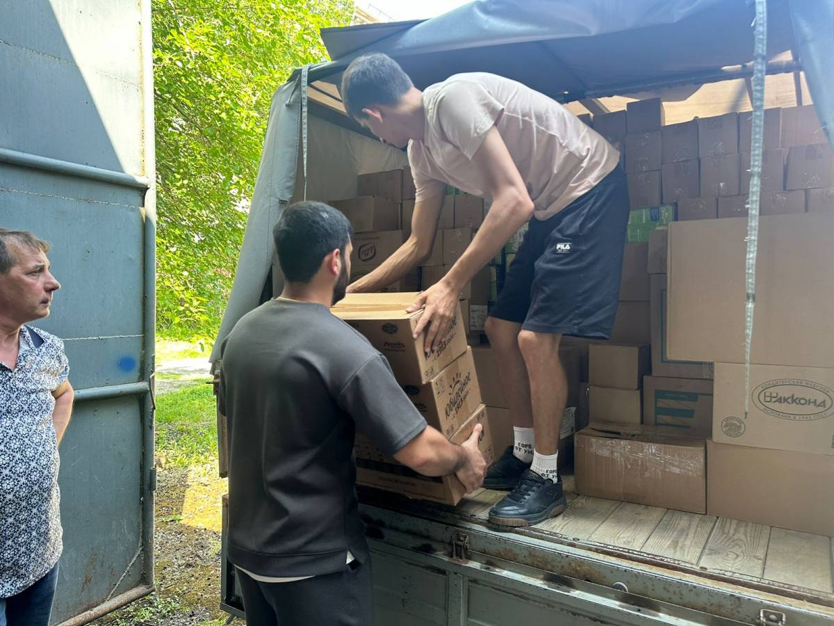 В ней – около тонны гуманитарного груза: памперсы, крупы, сладкое, средства личной гигиены, антисептики.