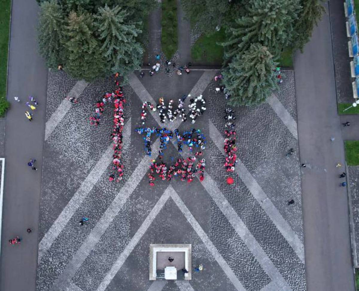 В рамках мероприятия трудовые коллективы Предгорья выстроились в цифру 1 и фразу: «Мир. Труд. Май»! в цвете российского флага.
