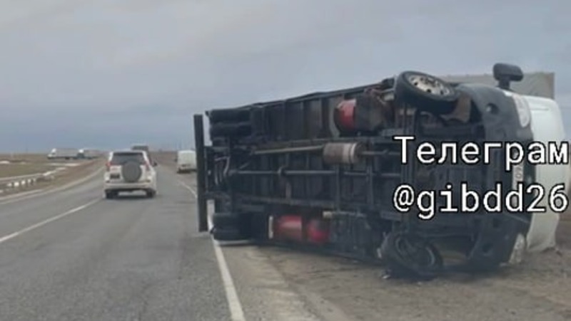 Сильный ветер перевернул пустую «Газель» на ставропольской трассе