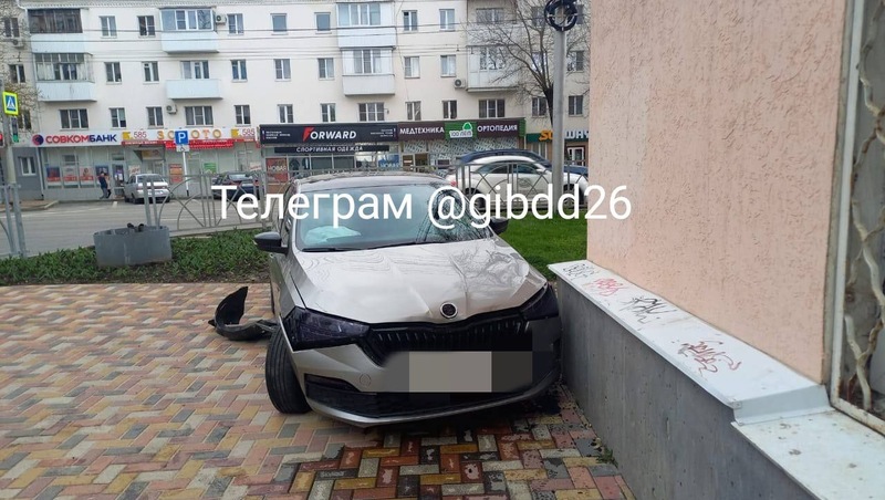 Инцидент произошёл днём 9 апреля на улице Ленина в городе Ставрополе. Водитель Skoda потерял управление, из-за чего сбил дорожное ограждение и въехал в стену дома, находившегося недалеко от дороги.