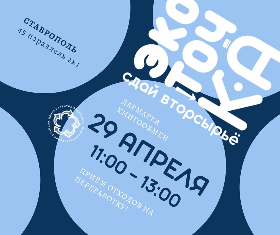 Волонтеры Центра развития рационального распределения отходов «Три Р Центр» https://vk.com/rrr_centr приглашают горожан на очередную акцию. Сдать вторсырье для дальнейшей переработки ставропольцев приглашают в субботу, 29 апреля, с 11 до 13 часов на улице 45 Параллель, 2к1.