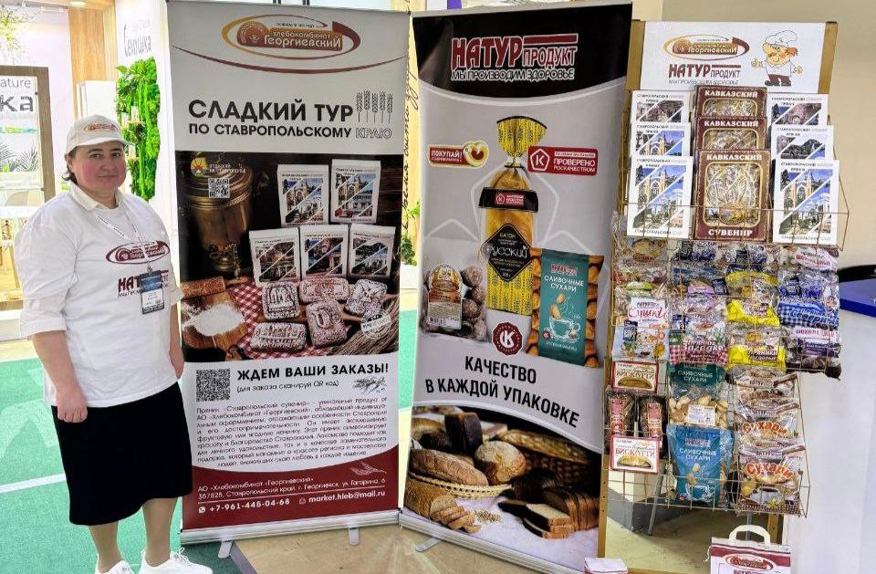 Хлебокомбинат «Георгиевский» принимает участие в выставке в составе команды, представляющей Ставропольский край. Предприятие привезло свою продукцию «НАТУРпродукт», изготовленную из натурального сырья, и новинку – пряник «Ставропольский сувенир».