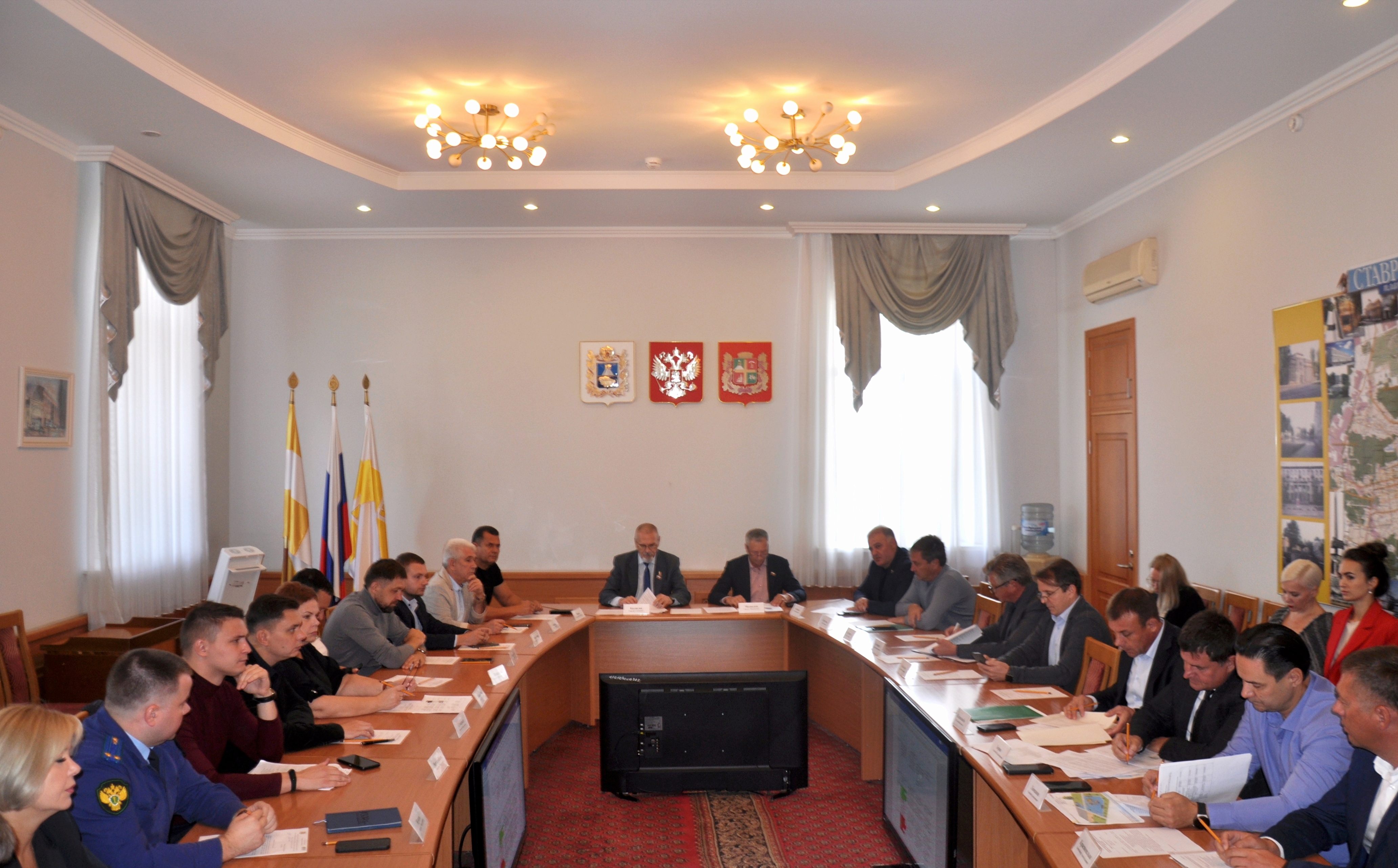 Под председательством Сергея Медведева состоялось заседание комитета городской Думы по вопросам жилищно-коммунального хозяйства, благоустройства, дорожного хозяйства, транспорта и энергетики. В работе комитета участвовали спикер городского парламента Георгий Колягин , первый заместитель председателя гордумы Евгений Пятак , а также зампреды Геннадий Тищенко , Александр Куриленко , Николай Щипачев , прокурор города Антон Жуков, председатель и зампред городской Контрольно-счетной палаты Марина Колесова и Светлана Чередниченко , руководитель комитета городского хозяйства города Ставрополя Виталий Кишкинев , главы районных администраций краевого центра.