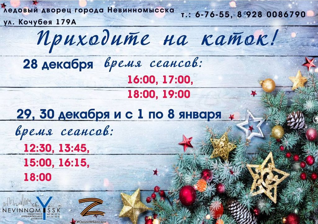 Ледовый дворец приглашает жителей и гостей города Невинномысска провести новогодние выходные на льду.