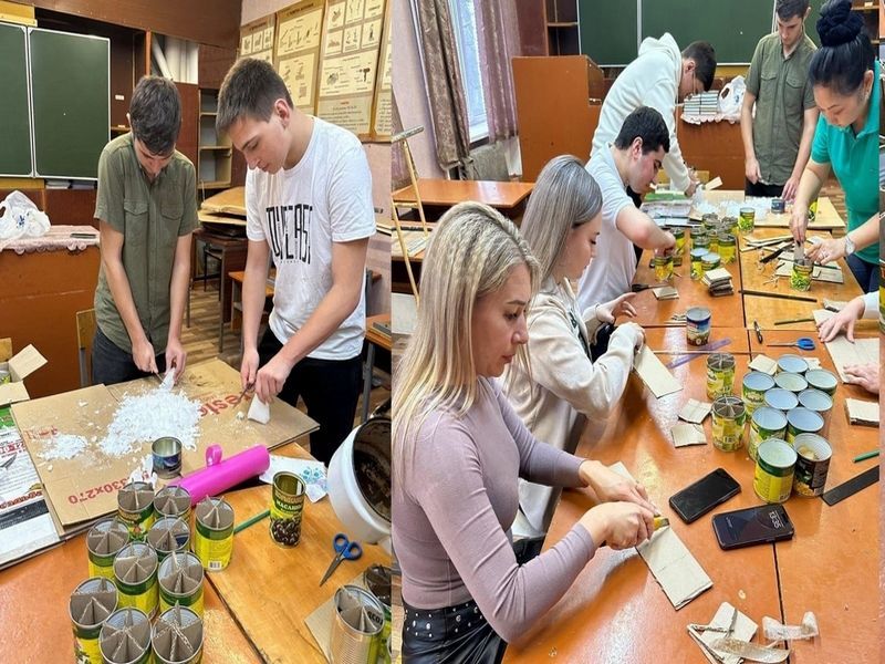 Волонтеры отряда «Добролюбы» Георгиевского колледжа приняли участие в мастер-классе по изготовлению блиндажных свечей.