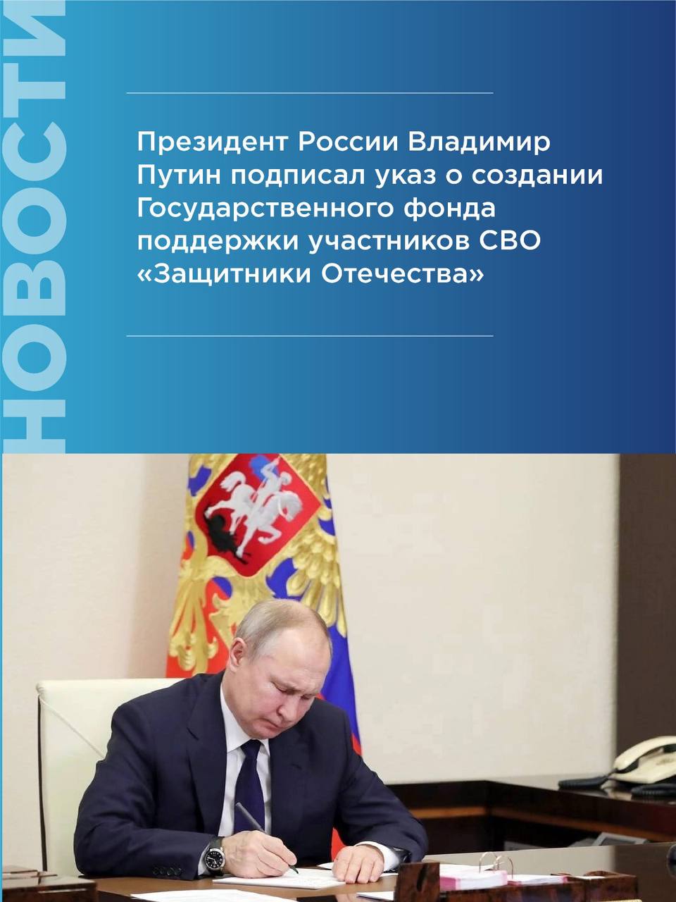 Президент Российской Федерации Владимир Путин" подписал указ о создании Государственного фонда поддержки участников СВО "Защитники Отечества".