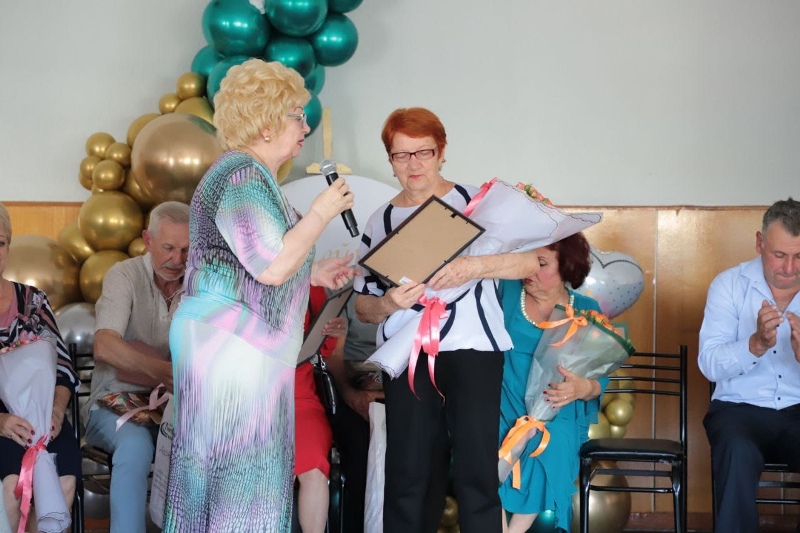 Юбилярам вручены подарки от краевого Совета женщин, прозвучали поздравления от актива территориальных женсоветов, от друзей, родных и близких «молодоженов».