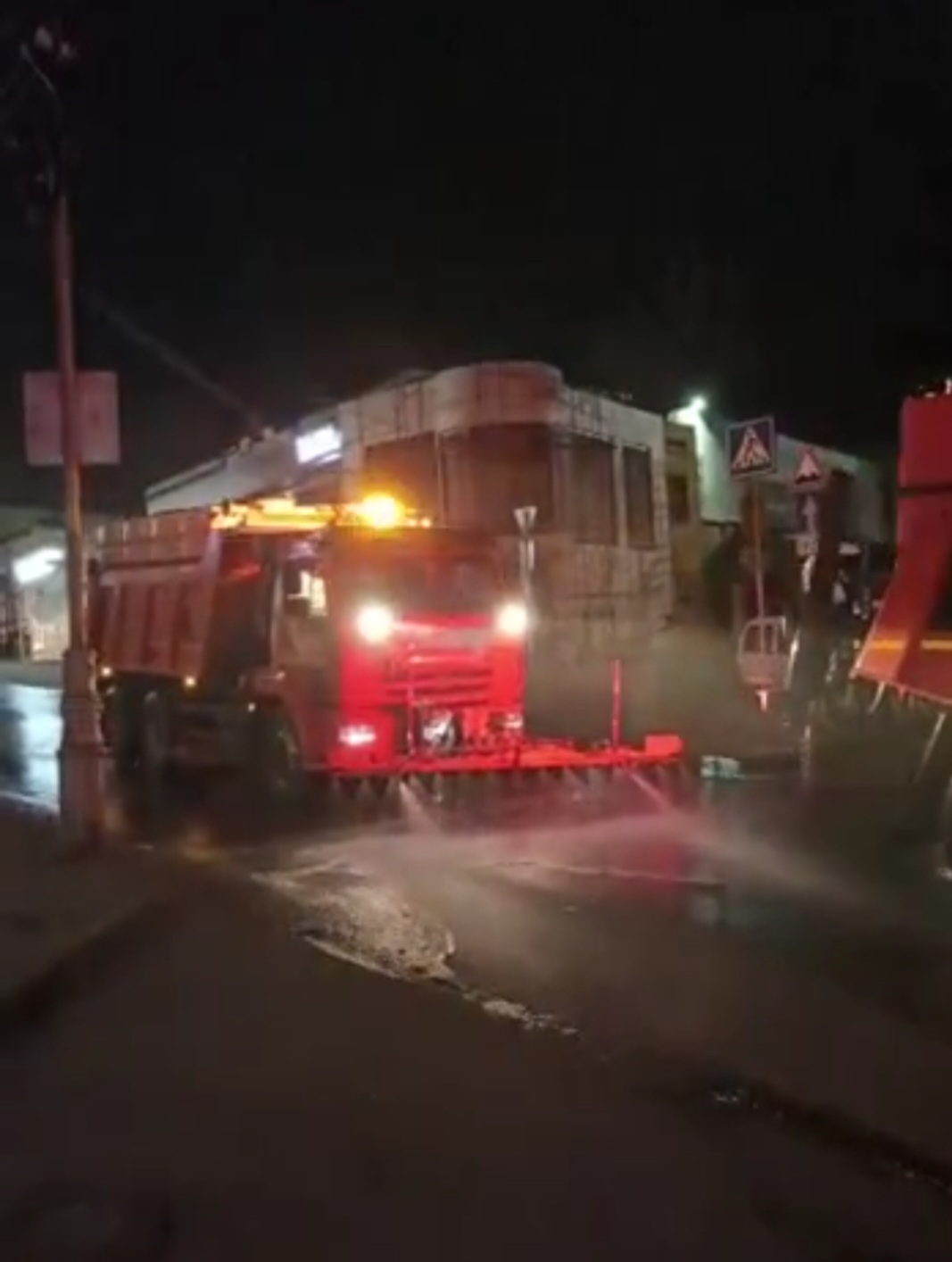 работе по уборке города после зимы. На улицах работают новые поливомоечные машины.