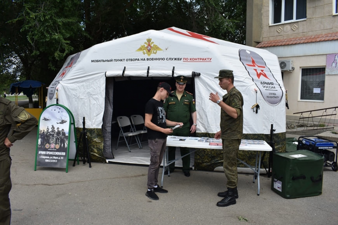 11 июля в Нефтекумский городской округ Ставропольского края из г. Ставрополя прибыл мобильный комплекс агитации по отбору на контрактную службу в Вооруженные Силы Российской Федерации. Жители округа реально заинтересовались возможностью поступления на военную службу по контракту с Министерством обороны России. При посещении комплекса желающие смогли ознакомиться с условиями и гарантиями, предоставляемыми государством, на время службы в Вооруженных Силах. Военнослужащие рассказали об условиях поступления на военную службу по контракту, о выплатах, положенных при заключении краткосрочного контракта, и дополнительных выплатах за уничтожение (захват) вооружения, военной техники и живой силы противника, о мерах социальной поддержки ветеранов боевых действий, помощи родным и близким военных, принимающих участие в СВО. Более 50 человек посетили мобильный комплекс, 18 заинтересовались службой по контракту, 4 мужчин изъявили желание подписать контракт с Министерством обороны России.
