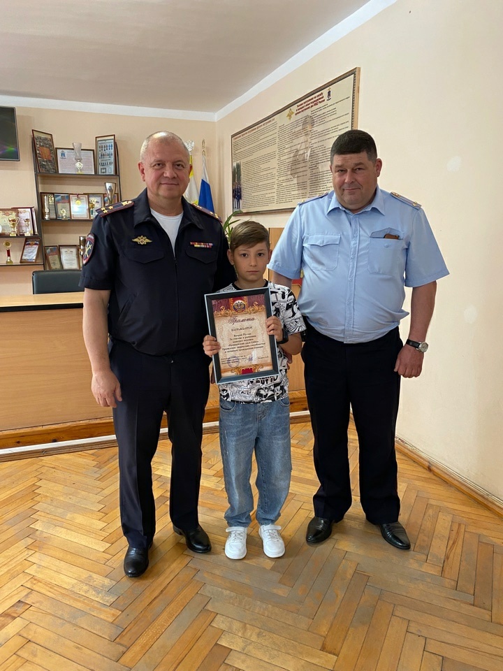 Начальник ОМВД России полковник полиции Назаров А.Н. лично вручил почетные грамоты ребятам, ставшим победителями в своих возрастных категориях, - Гребеневой Марии и Вихрову Руслану.