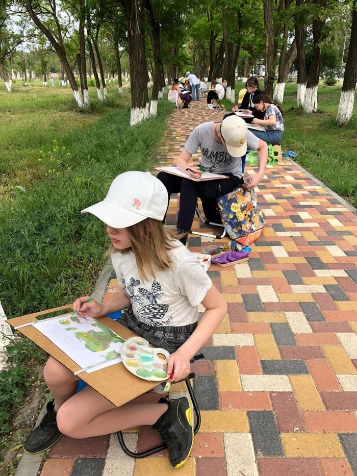 А ученики школы искусств, вдохновляясь пейзажем сквера, изобразили его на пленэре: в своих произведениях художники отразили всю красоту и ценность сквера.