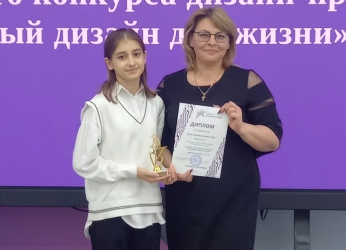 Недавно Виктория заняла 1 место в региональном конкурсе дизайн-проектов «Зелёный дизайн для жизни», который прошёл на базе регионального центра «Сириус 26».