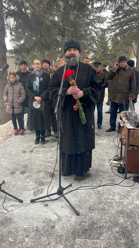 В День Защитника Отечества, 23 февраля 2023 года благочинный Кисловодского церковного округа протоиерей Иоанн Знаменский принял участие в открытии мемориальной доски военнослужащим, погибшим при исполнении воинского долга в ходе специальной военной операции.