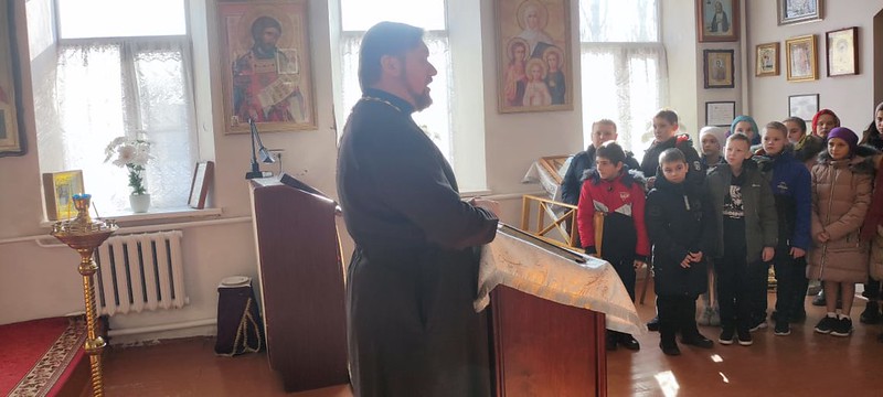 Учащихся 4-х классов радушно встретил настоятель храма священник Михаил Толопа. Отец Михаил рассказал об устройстве храма, иконах, о Боге и о вере православной.