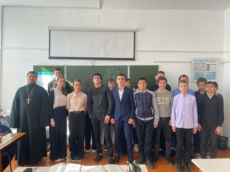 31 января 2023 года настоятель храма преподобного Серафима Саровского села Труновского иерей Дмитрий Лукин провел беседу с учащимися МКОУ ООШ №8 села Труновского.