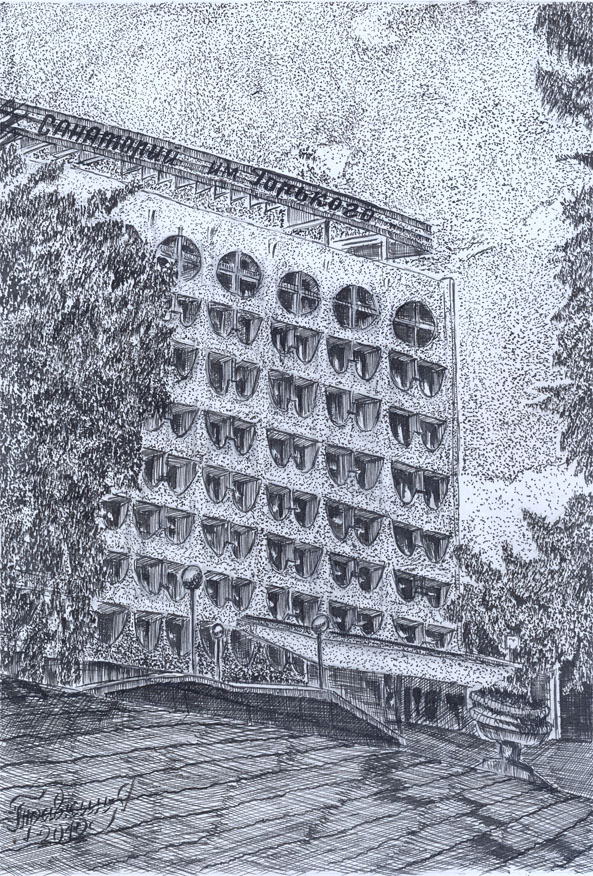 Алексей Травкин. Бумага, тушь. Корпус санатория имени Горького, 2012 год