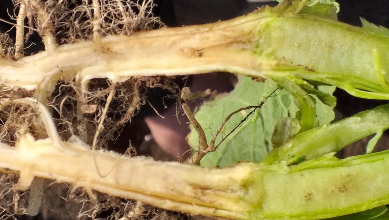Заболевание опасно тем, что поражает корневую систему растений и внешне практически не заметно. В корнях заражённых всходов образуются полости, затем страдают сердцевина и стебель. В бесснежные зимы и во время колебаний температур всходы могут просто погибнуть, а уцелевшие растения дают меньший урожай, чем их здоровые собратья.