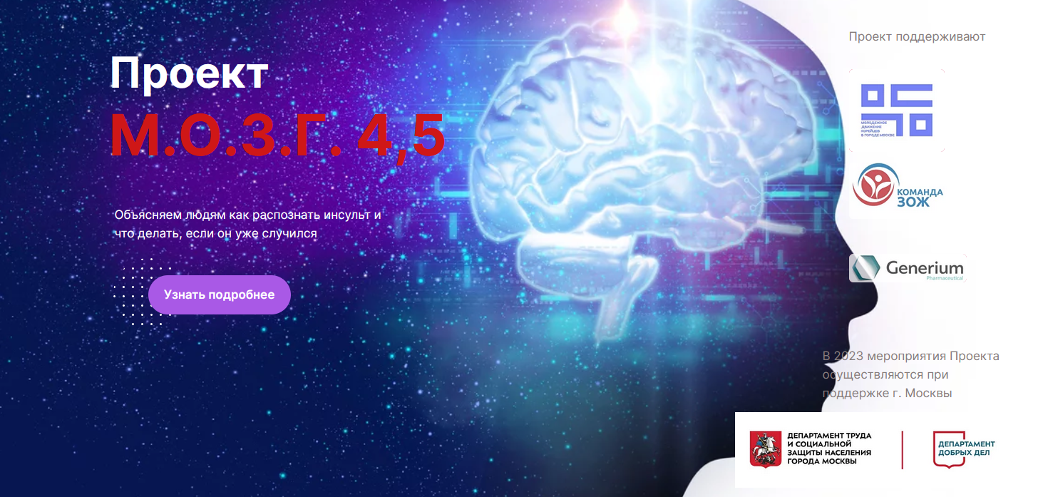 Проект М.О.З.Г.4,5. Объясняем людям как распознать инсульт и что делать, если он уже случился