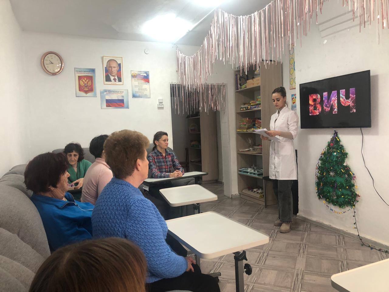 14 и 15 января 2025 года медицинская сестра отделения дневного пребывания граждан пожилого возраста и инвалидов ГБУСО «Благодарненский ЦСОН», подведомственном министерству труда и социальной защиты населения Ставропольского края, провела лекцию-беседу «Вирус иммунодефицита человека», по поручению Губернатора Ставропольского края и в связи с решением Государственного антинаркотического комитета от 19.12.2024 №55 с целью информирования сотрудников и получателей социальных услуг о риске заражения социально-значимыми инфекционными заболеваниями, сопутствующими наркопотреблению.