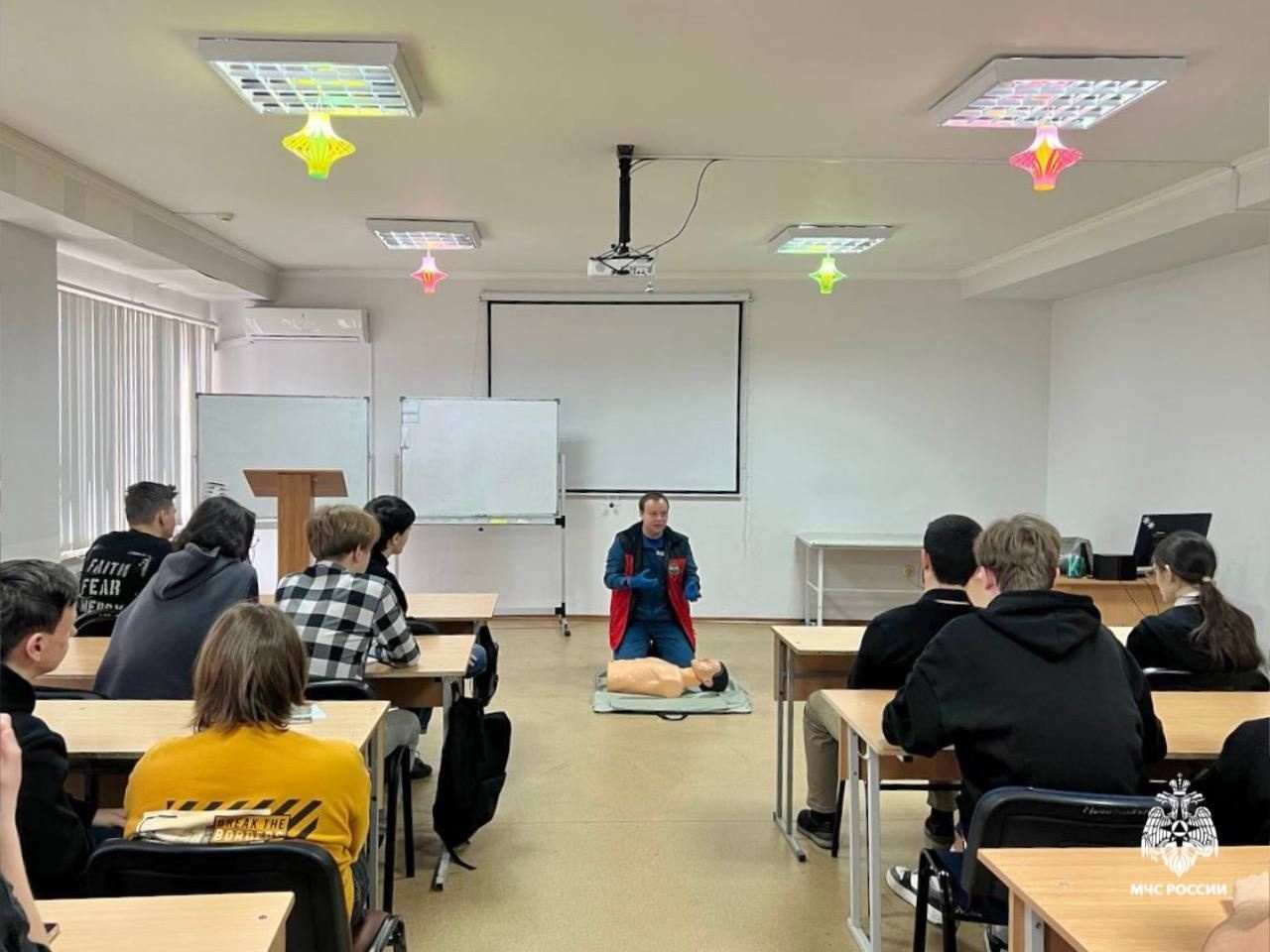 Психолог «Центра экстренной психологической помощи МЧС России» Анатолий Петраков подробно объяснил студентам, как проверить сознание и дыхание пострадавшего, а затем выполнить непрямой массаж сердца и искусственную вентиляцию легких. Что немаловажно, в процессе теоретической части, он также привел примеры самых частых ошибок при оказании помощи.